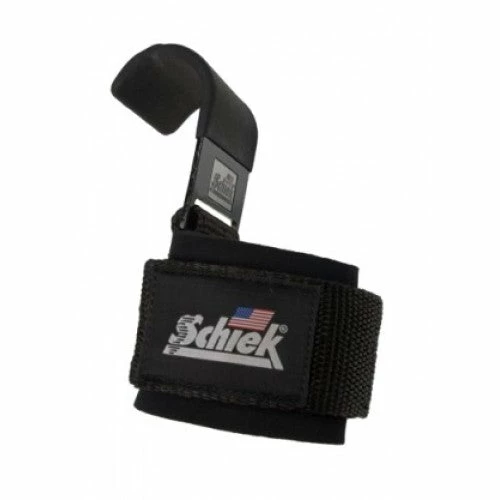 The Schiek Model 1200 Power Lifting Hooks combine a rugged hook with a deluxe wrist support. The durable steel hooks are 2.5″ wide with slip resistant coating. The wrist supports are made with 1/4″ thick and 2.5″ wide neoprene. The 2″ outside strap and durable stainless steel buckle ensure a secure grip. The Lifting Hooks are perfect for lat pull downs, shrugs, pull ups, low rows and other back and shoulder exercises. Made with pride in the USA!