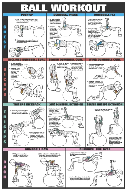 Algra Co-Ed Series Exercise Ball Chest, Biceps, Triceps, and Back Chart