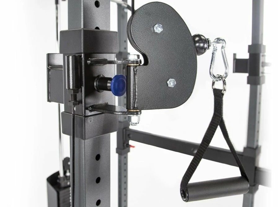 - FUNCTIONAL FRONT – Dual Front Adjustable Swiveling Pulleys with 23 Height Positions. Adjust the Pulley Height by Simply Releasing the Pop-Pin and Sliding the Pulley to Your Desired Position. The Laser Etched #’s on the Inside of Each Upright Will Make Sure Both Pulleys are at Equal Heights.