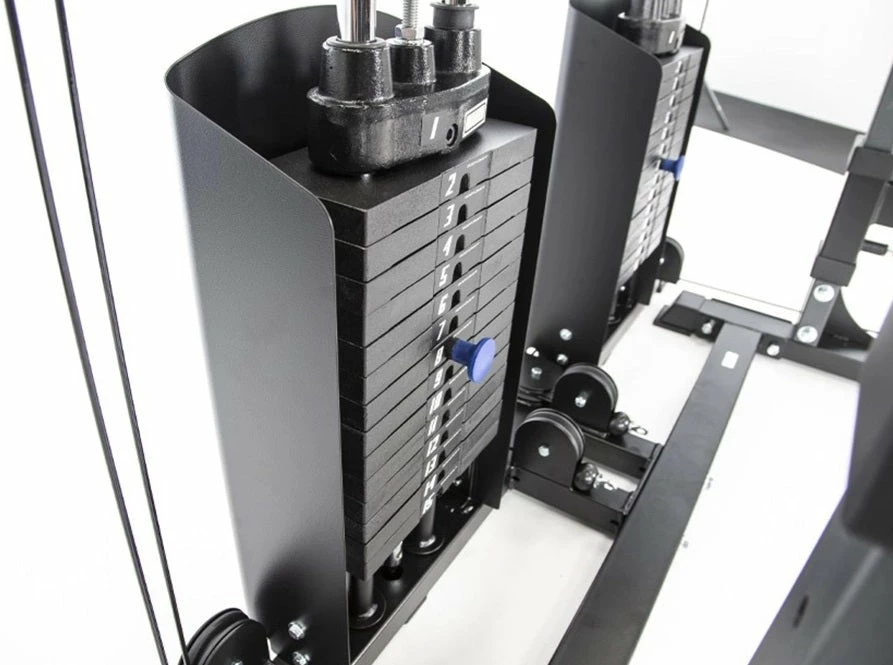 - Weight Stack: Dual 150 lb Stacks. Precision milled steel plates with nylon bushings for smooth action. (200 lb upgrade kit available)