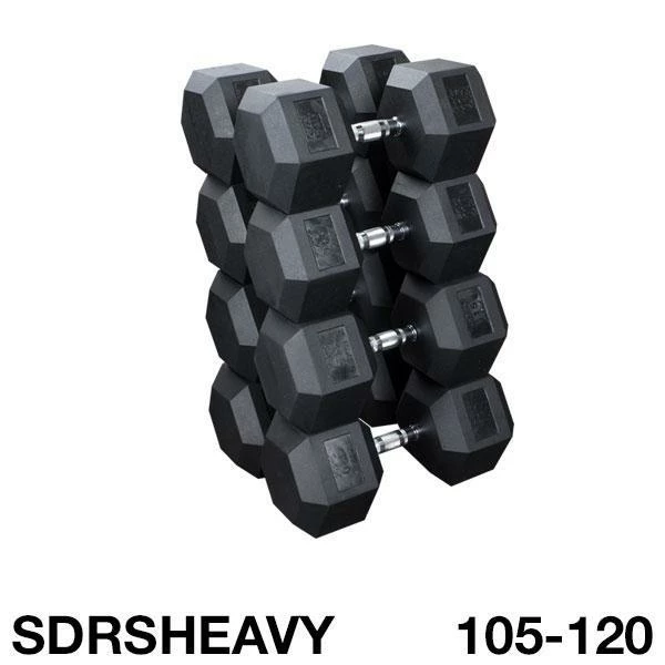 SDRS – Save more money on Rubber Hex Dumbbell Sets! Sets include pairs of Rubber Hex Dumbbells increasing in 5 lb. increments. Use the drop down menu below to choose your set and quantity, then click the “Add Item” button to select. Continue adding sets until satisfied then click “Add to Cart” button and continue shopping or go to check out.