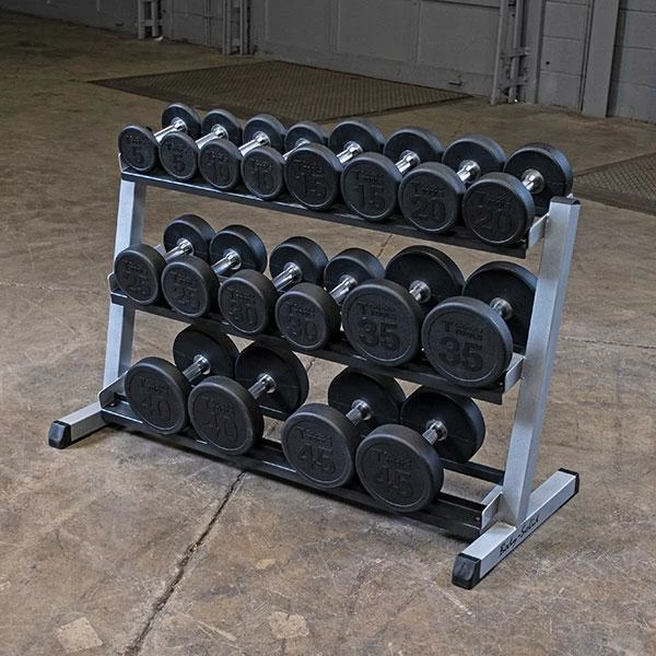 Organize, store and safely keep dumbbells off the ground with the Body-Solid GDR48 48” 3-Tier Dumbbell Rack.