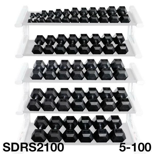 SDRS – Save more money on Rubber Hex Dumbbell Sets! Sets include pairs of Rubber Hex Dumbbells increasing in 5 lb. increments. Use the drop down menu below to choose your set and quantity, then click the “Add Item” button to select. Continue adding sets until satisfied then click “Add to Cart” button and continue shopping or go to check out.