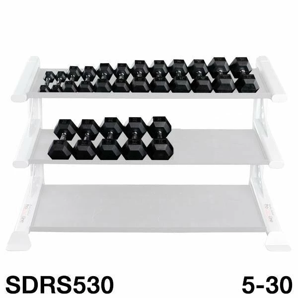 SDRS – Save more money on Rubber Hex Dumbbell Sets! Sets include pairs of Rubber Hex Dumbbells increasing in 5 lb. increments. Use the drop down menu below to choose your set and quantity, then click the “Add Item” button to select. Continue adding sets until satisfied then click “Add to Cart” button and continue shopping or go to check out.