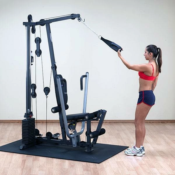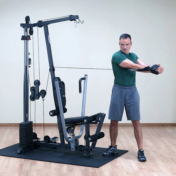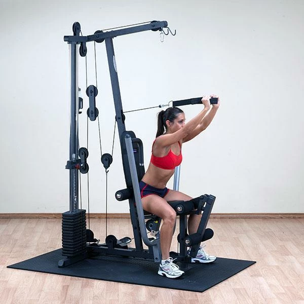 The Body-Solid G1S is an ideal entry level home gym. It has all the features you need for a complete toning, trimming and strength training program at home. The G1Sis based on the Body-Solid standard press arm design, and is centered on a 160 Lb. weight stack. The small yet stable footprint of the gym can fit in places other gyms with the same features and exercise options simply canÆt. Body-Solid only uses high end quality pulleys, cables, and dura-firm upholstery to make your home gym purchase an outstanding value.