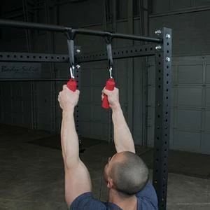 Challenge your grip strength and target your forearms with Body-Solid Tools’ BSTNG Nunchuck Grips. Use Nunchuck Grips (also known as grandfather clock grips) for pull-ups similar to the classic towel grip pull-up or add them to a rig for a challenging monkey bar course. These state-of-the-art nunchuck grips provide high-level grip strength workouts but also offer targeted forearm movements similar to a rope climb.