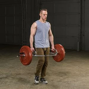 Body-Solid’s new OTB50RH Olympic Shrug Bar features innovative raised handles allowing for easier and safer workouts. The raised handles on the OTB50RH not only make this shrug bar easier to lift from the ground but also reduces strain and tension on your hands and back while performing squats, deadlifts, shrugs and more.