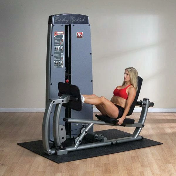 Body-Solid’s ProòDual Leg Press/Calf Extension’s advanced design reduces spinal compression while allowing full range of motion in a natural biomechanically efficient movement. The machine features pillow block and sealed ball bearings for precision alignment and friction-free motion.