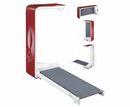 This all new ultra compact treadmill/workstation easily folds into a great looking piece of furniture. Use it as a Standing Laptop Desk/Upright Table or lay it on its side to serve as a bench or table. Don’t be fooled by it’s size, this extremely solid and powerful walking machine has plenty of power to easily support a person up to 300 lbs. The SpaceWalker is fully assembled out of the box and locks in both the folded and open positions. A safety key is included to prevent unauthorized use when removed and will shut the unit off if you were to slip or fall. Features an easy to read bright red LED display providing speed, time, distance, and pulse.