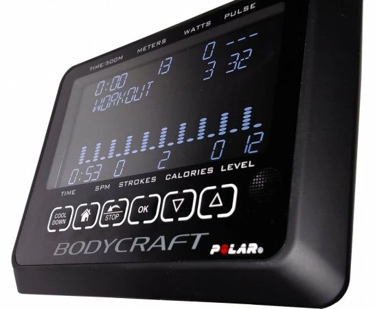 - Display Time, Distance(Meters), Calories (Cal), Pulse, Strokes Per Minute (SPM), Watts, Level, Profile.
