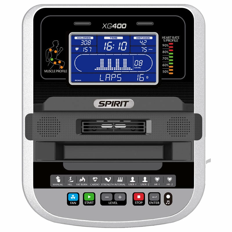 The XG400 features our patented direct drive technology and a heavy thirty pound flywheel to create a fluid and friction free motion unlike any elliptical trainer on the market. The XG400 is smooth even at high stride rates, making it the perfect product for sprint training or interval training. Whether you are looking to improve athletic performance or general conditioning, this trainer will help you achieve your goals.