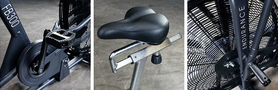 The Endurance FB300 Dual Action Fan Bike is designed to be suitable for a variety of fitness levels from the novice to expert rider and is perfect for both rehabilitation and high-intensity workouts. The FB300 offers a comfortable fit for various size users as the seat post is completely adjustable forward, back and vertical. This allows virtually any sized user to safely adjust the machine to their ideal position.