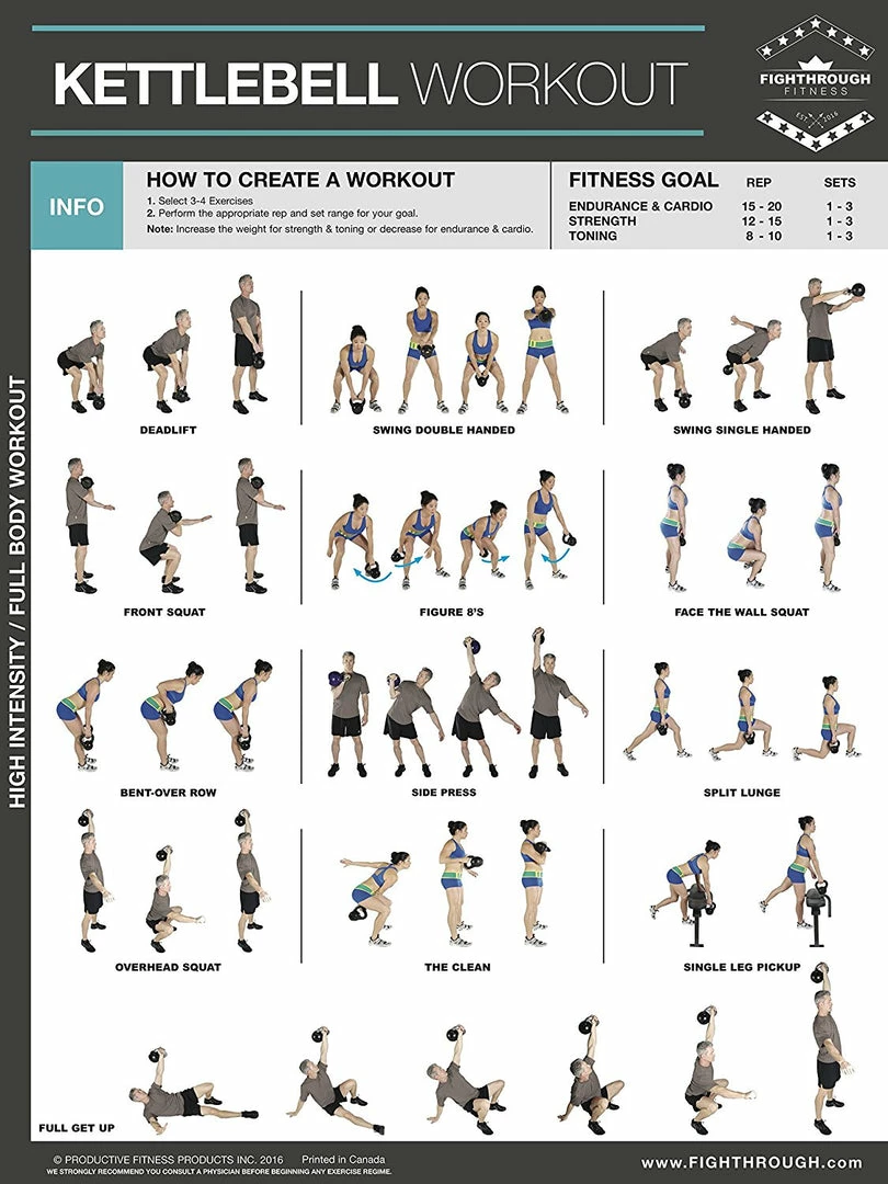 Kettlebell High Intensity Exercises – Full Body Laminated Poster / Chart – Strength & Cardio Training Chart – Core – Chest – Legs – Shoulders & Back – Build Muscle, Tone & Tighten – Your Guide to Body Building & Fat Loss With Kettlebell Training – 18”x24″