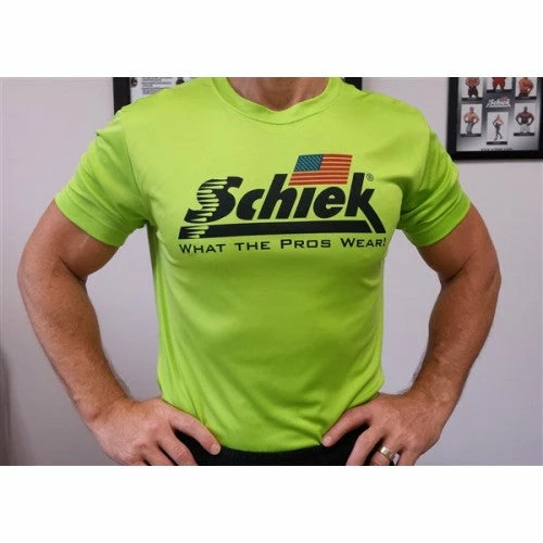 Schiek Poly HD Men’s Performance T-shirts are made with 100% polyester and printed with the Poly HD dyeing process that provides a high definition print that will not crack or fade and has absolutely no feel to the printed area. The dyeing process also does not affect the moisture wicking property of the shirt. Pick up a Schiek Poly HD T-shirt today and “Wear What The Pros Wear!”. Available in White, Silver, Red, Royal Blue, Lime Green, Neon Yellow and Grey Heather and the following sizes: