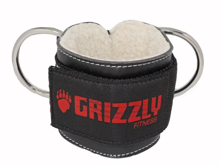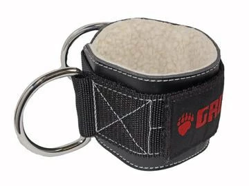 Grizzly Fitness Premium 3″ Padded Leather Ankle Strap for Men and Women | Sold as Single | One-Size | Used by Pros to provide Extra Comfort and increase Max | 3” wide durable stitched Leather with soft Borg Padding | Double D-Ring Attachment | Velco closure