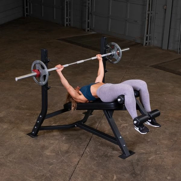 The SODB250 Decline Bench is an ideal platform for safe and effective training of lower pecs, triceps, biceps, and anterior deltoid muscles.