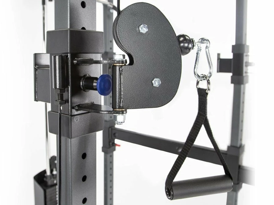 - FUNCTIONAL FRONT – Dual Front Adjustable Swiveling Pulleys with 23 Height Positions. Adjust the Pulley Height by Simply Releasing the Pop-Pin and Sliding the Pulley to Your Desired Position. The Laser Etched #’s on the Inside of Each Upright Will Make Sure Both Pulleys are at Equal Heights.