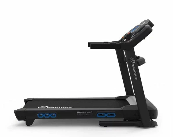 - Intuitive, fully loaded console with blue backlit DualTrack™ screens — offers 26 Nautilus Performance Training programs including interval, heart rate and weight management. The dual screens offer visibility to workout metrics, even when the media tray is in use.