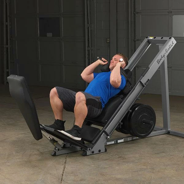 Body-Solid engineers knew that the best way to build an explosive lower body, and stay that way, would be to make your workouts incredibly Powerful… Comfortable… and Safe. As you work your quads, glutes, and calves, the engineered smoothness of the Leg Press / Hack Squat Machine spares your bones and joints. Three lockout positions are under the user’s control throughout the exercises and provide user safety and the option of different start / stop positions.