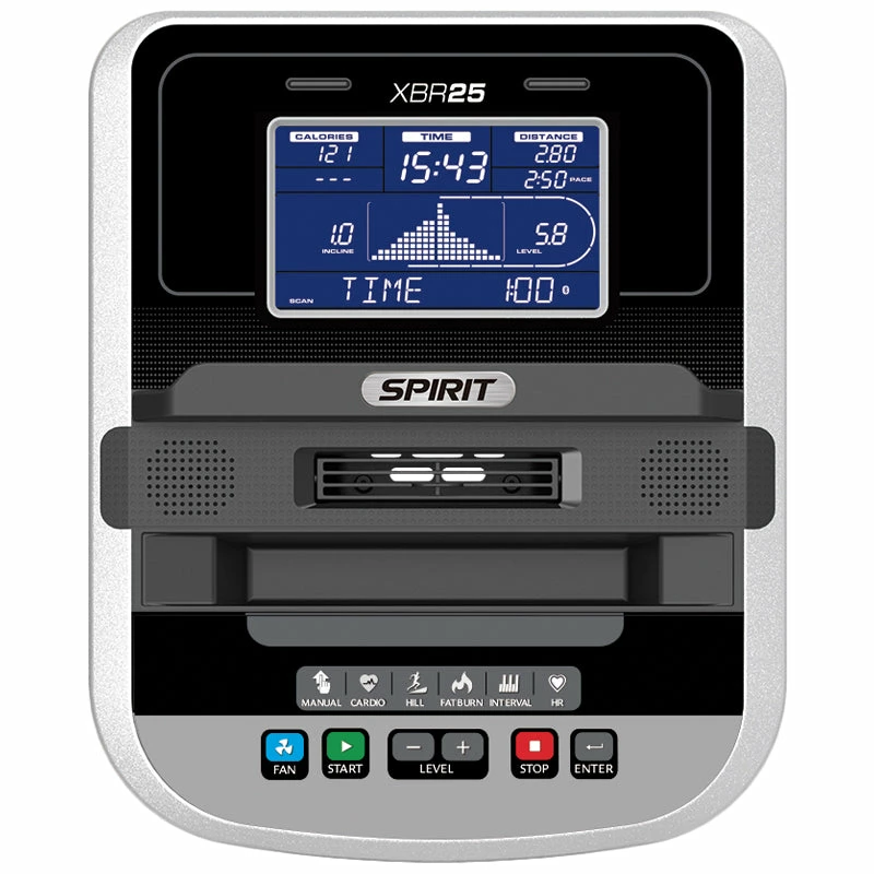 The XBR25 is our entry level semi-recumbent bike. This unit offers six programs with extensive console feedback. We’ve integrated a swivel fan, reading rack, an accessory holder, and dual beverage holders into the design for maximum convenience.